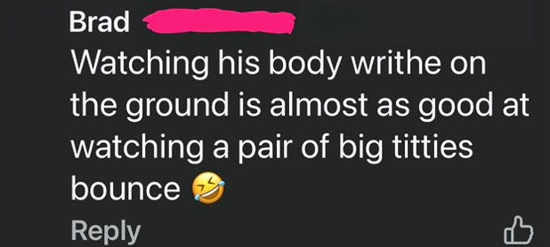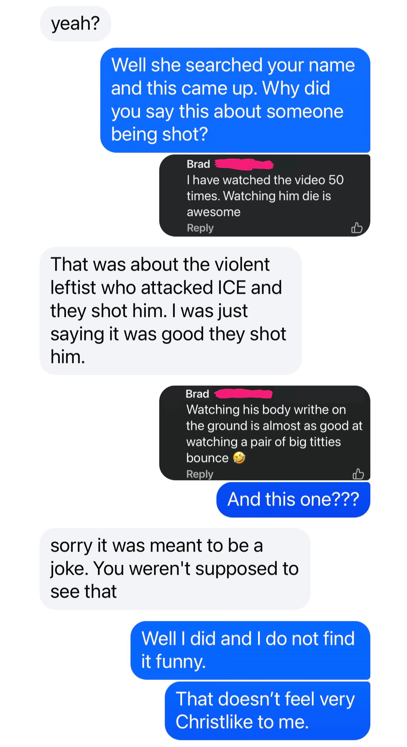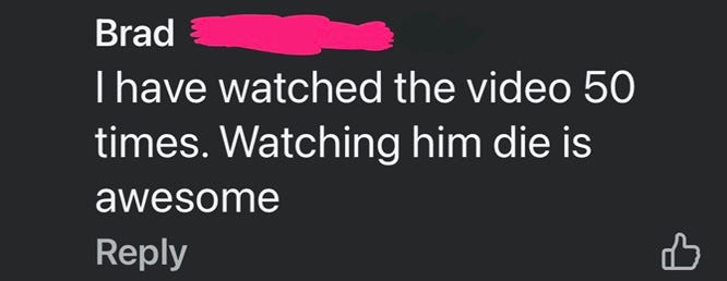 I started by going through his public posts, looking for something to use. He had a lot of public comments praising ICE for shooting Alex. I want to show you a few of them.