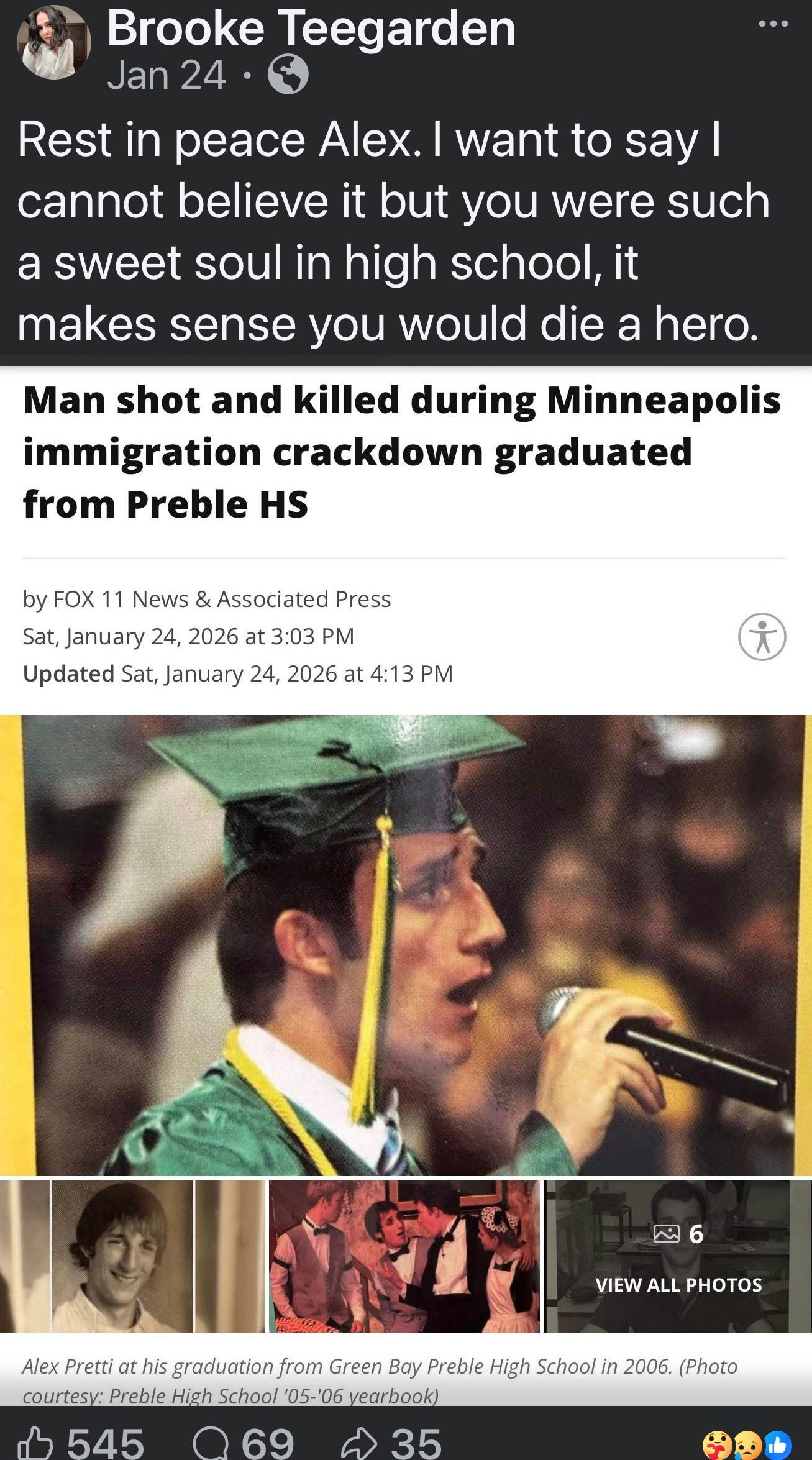 I went to school with Alex Pretti, one of the people recently shot by ICE. On my personal Facebook page, I wrote a post in his memory, calling him a hero, because he was.