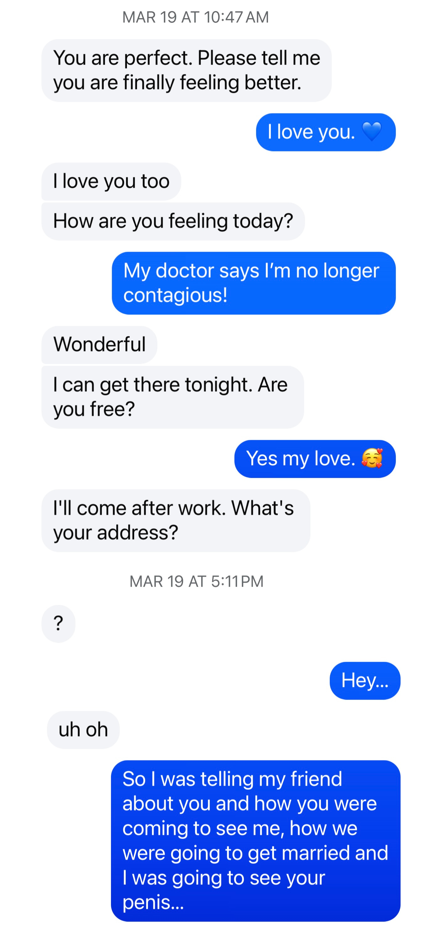 He began to message me daily. So often, that I will only show you my favorite parts of the conversations.